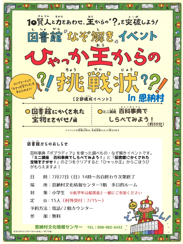 【図書館なぞ解きイベント】「ひゃっか王からの挑戦状?!」