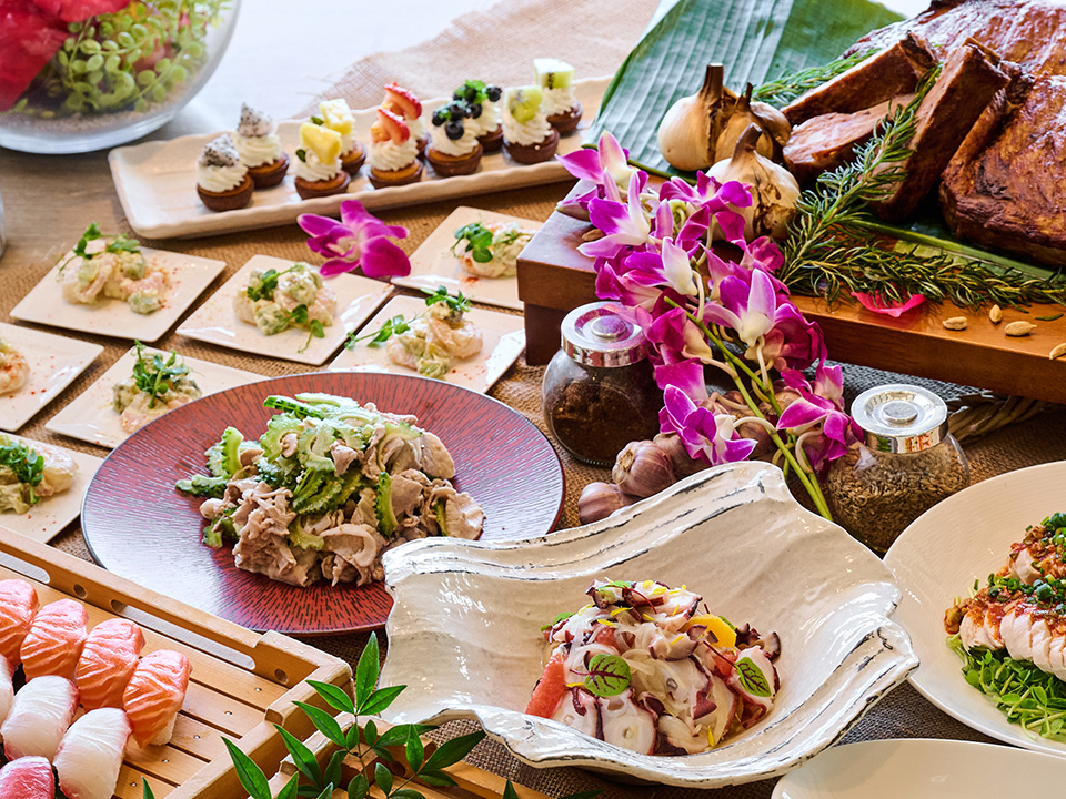 沖縄の暑い夏を彩る、スパイシー&トロピカルな料理の数々をビュッフェスタイルでご提供いたします。