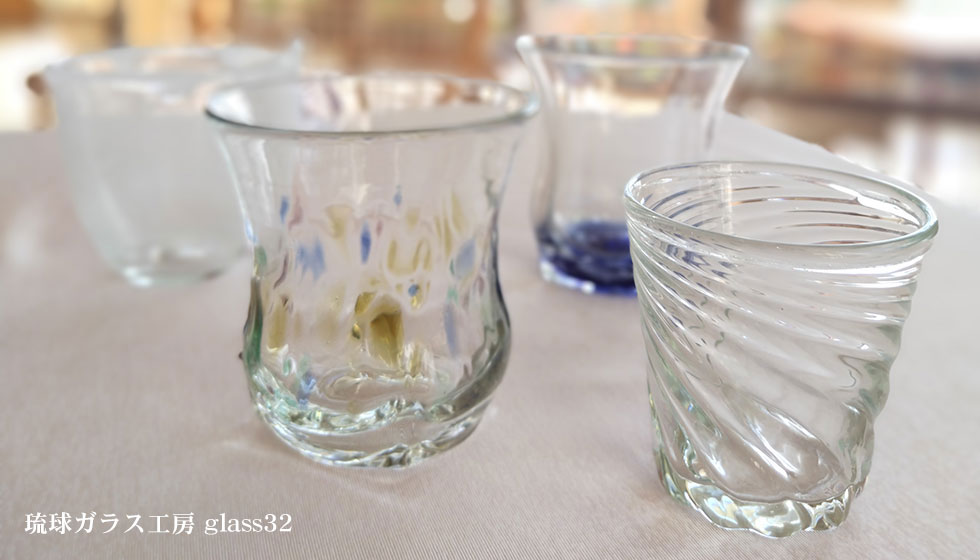 太陽のきらめきを放つ沖縄の海(泡波)を表現したグラスや赤土をまとわせたグラスなど、琉球ガラスを代表する独創的な技法から生み出された作品たち。再生ガラス100%にこだわり、材料の廃瓶の原色をそのまま活かして作られた【宙吹ガラス工房 虹】と、「青の洞窟」シリーズや、新しい感性で主張しすぎないシンプルな作品を多く手掛ける【Glass32】の2つの工房の作品を一堂に集めました。旅のお土産や、親しい方への贈り物としてもおすすめです。