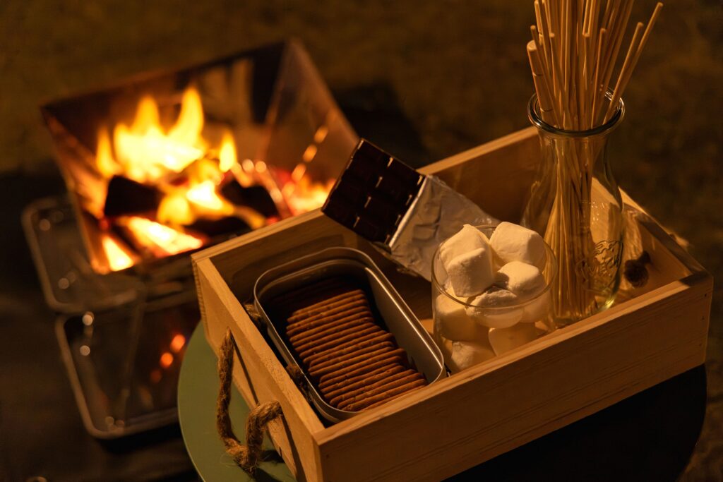ガーデンエリアで焼きマシュマロ 毎週土曜日20:00~期間限定『キャンプファイヤー&スモア(S’more)』