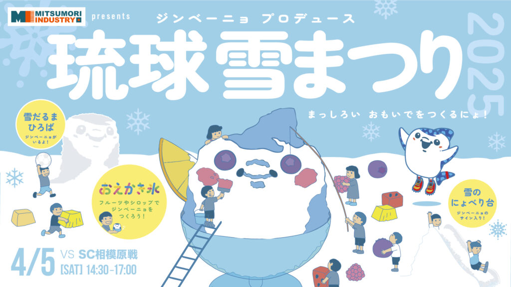 4月5日(土)明治安田J3リーグ第8節 相模原戦の試合前に、場外特設エリアにて「ジンベーニョプロデュース 琉球 雪まつり」を開催することが決定しましたのでお知らせします。