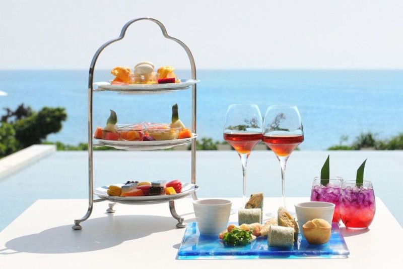 お飲み物には、伊良部島で焙煎された豆を使用したコーヒーや紅茶など計15種類をフリーフローにてお楽しみいただけます。また、シャンパンフリーフローをオプションにてご用意しております(90分制、追加料金 2名様10,000円)。