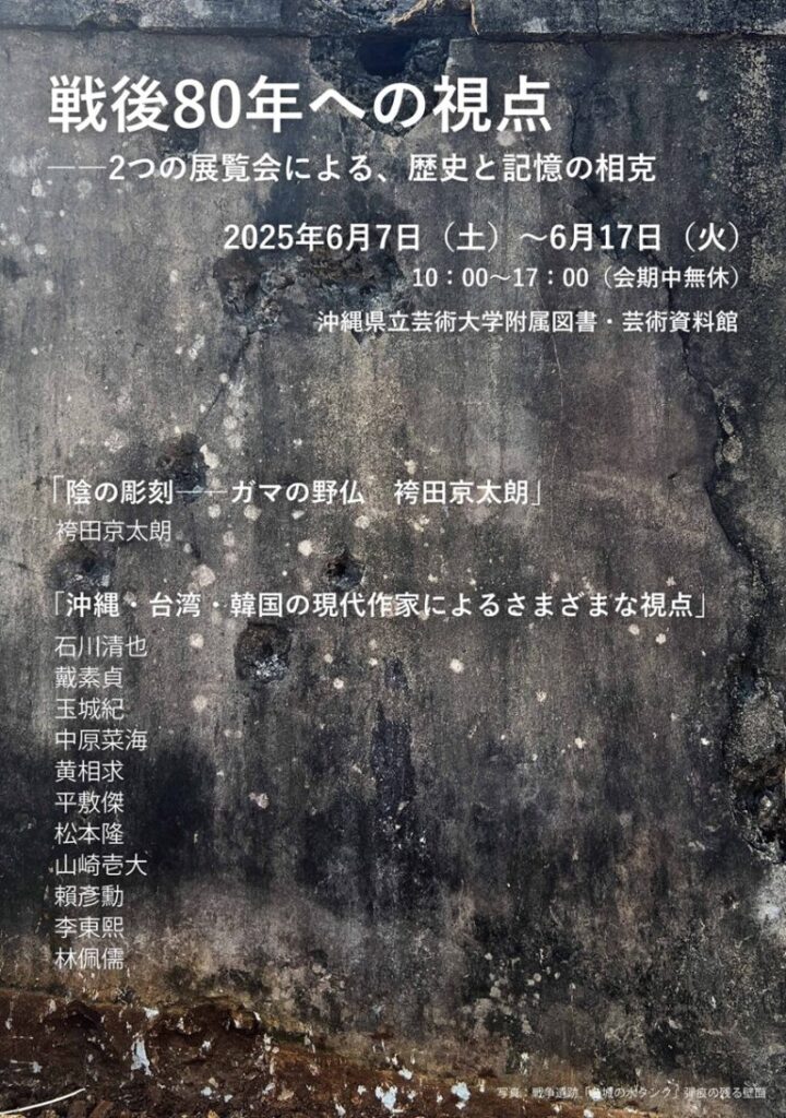 戦後80年を迎える今年、彫刻家・袴田京太朗の個展と、沖縄・台湾・韓国の若手作家による展示を同時開催。多様な問題意識や視点が交差する本展は、歴史の継承と未来への創造的対話の場となることを目指します。