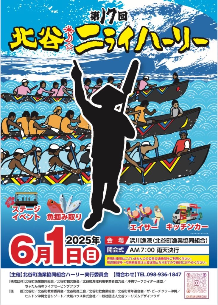 浜川漁港で毎年行われている北谷ハーリー大会。もともとは漁師が海の恵みに感謝し、安全や豊漁を願う伝統行事ですが、現在では女性や子どもでも参加できる行事となっています。サバニと呼ばれる漁船を用い、呼吸を合わせてスピードを上げ、優勝を目指して競い合います。北谷の夏を盛り上げる恒例行事としてレースの他、ライブステージやエイサー、フィナーレの花火など1日中楽しめるイベントとなっています。