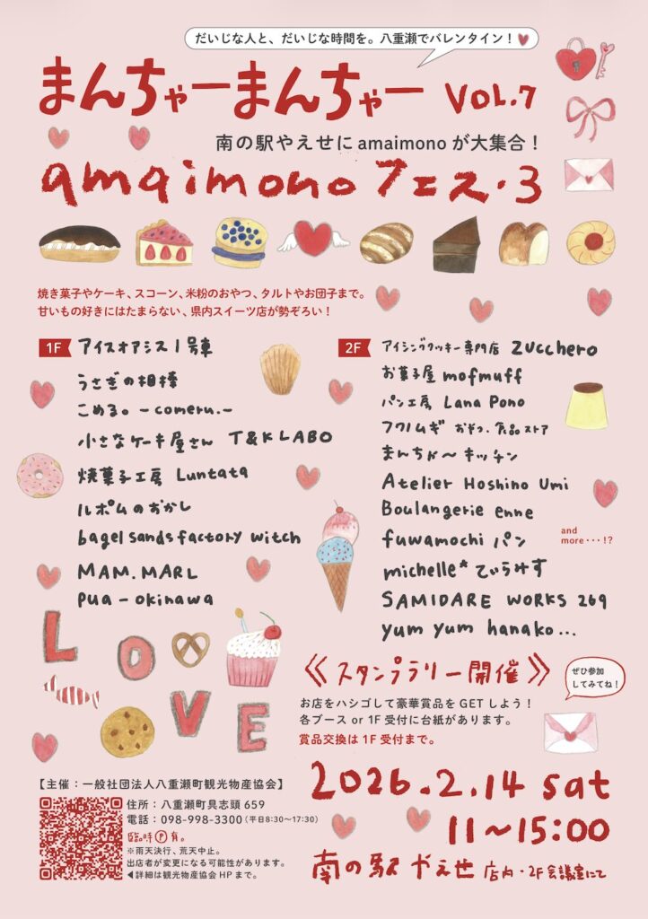 主催者ホームページ:https://yaese-kankou.com/amaimono%e3%83%95%e3%82%a7%e3%82%b93%e3%81%be%e3%82%93%e3%81%a1%e3%82%83%e3%83%bc%e3%81%be%e3%82%93%e3%81%a1%e3%82%83%e3%83%bcvol-7/