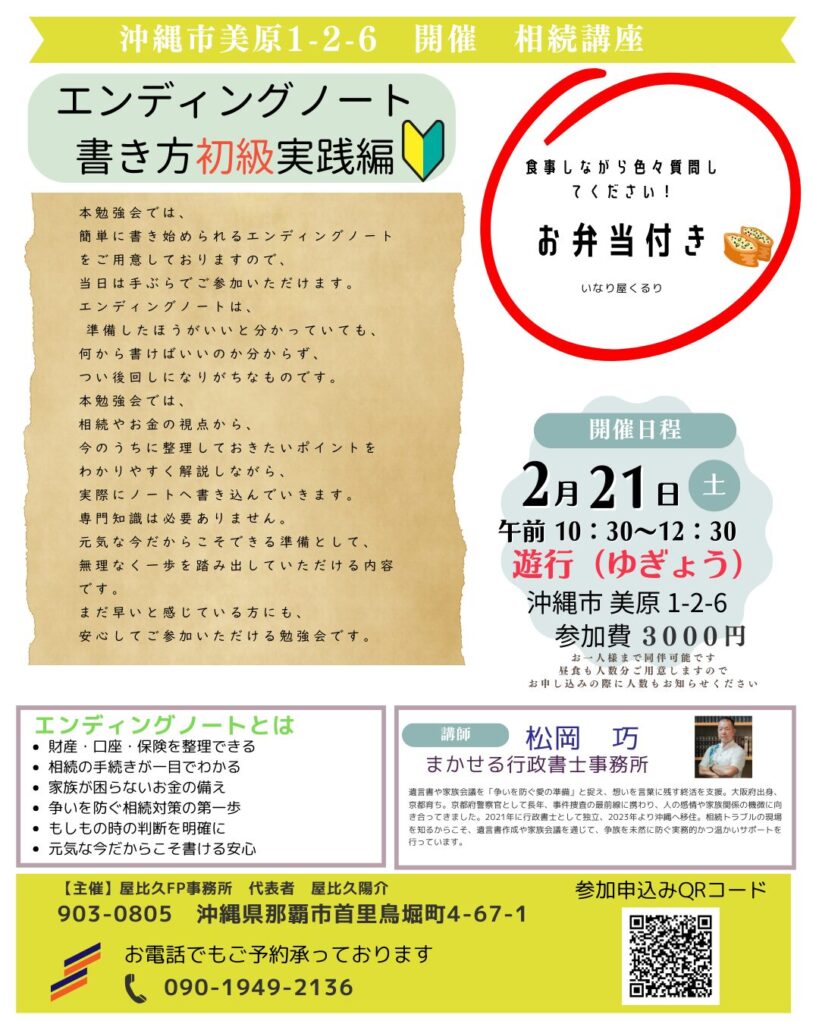 「2月21日土曜日 沖縄市開催」エンディングノートの書き方実践編