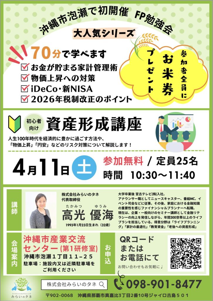 大人気シリーズ!沖縄市泡瀬で初開催! 初心者向け資産形成講座