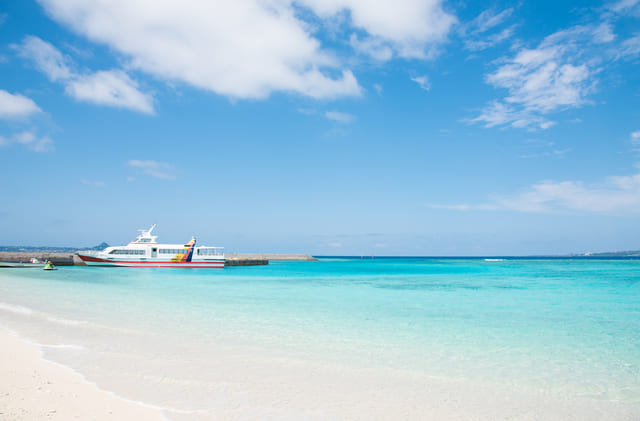 津堅港から歩いて約15分程。島の6割がニンジン畑ということから「キャロットアイランド」とも呼ばれる離島。高速船で約15分。